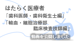 NEW◆はたらく医療者◆「歯科医師・歯科衛生士編」「輸血・細胞治療部 臨床検査技師編」の動画を掲載しました
