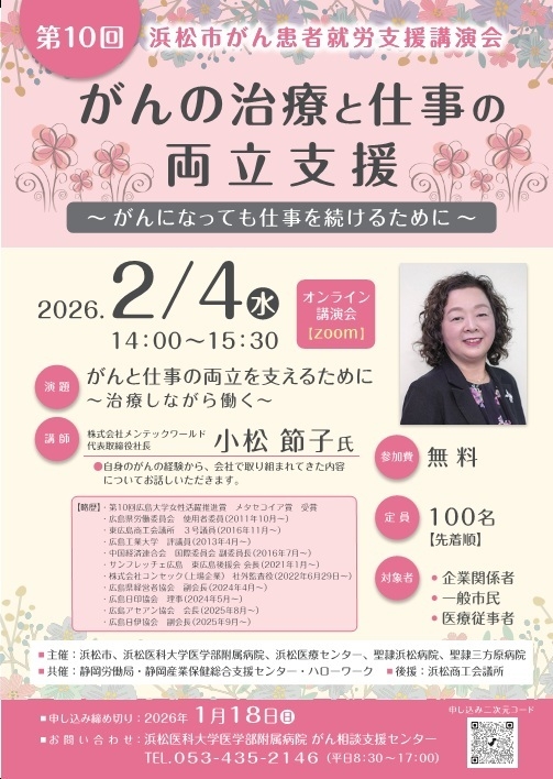 第10回 浜松市がん患者就労支援講演会を開催します(令和8年2月4日)
