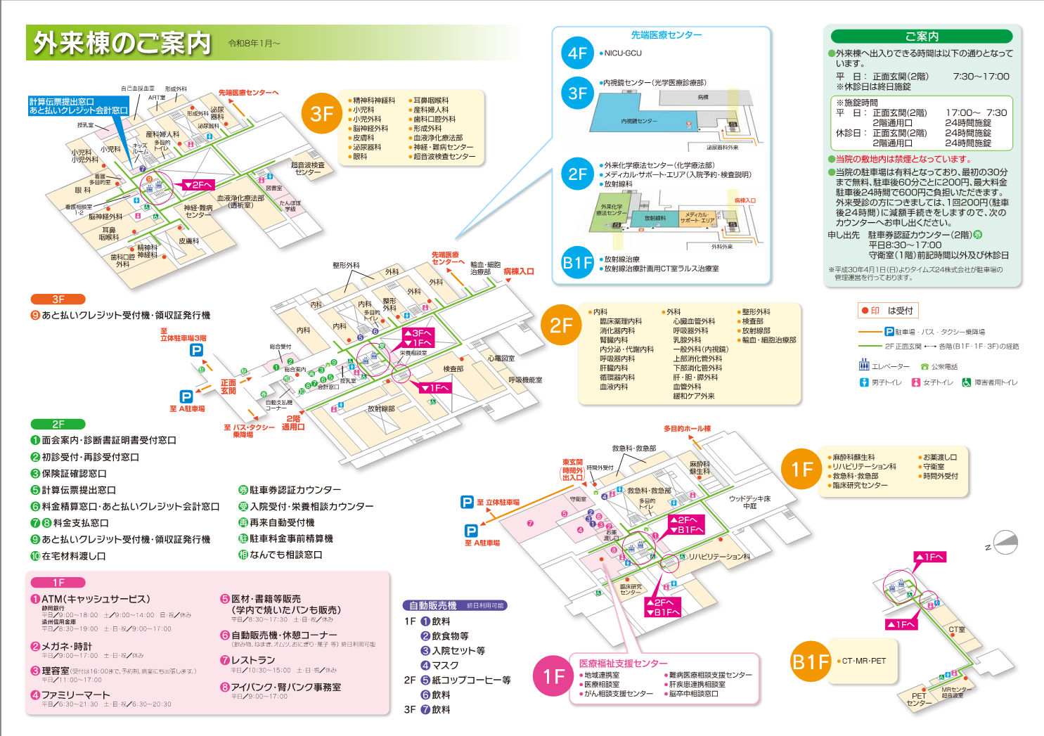 詳細はこちらをご覧ください。 外来棟ご案内 (0.9MB)