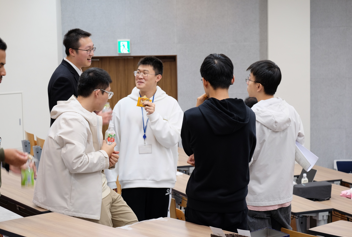 また、研究報告会に引き続き、2025年4月および10月入学の新入留学生8名を歓迎するウェルカムイベントを開催しました。報告会では緊張していた留学生も、終始和やかな雰囲気の中でお菓子やソフトドリンクを囲みながら歓談を楽しみました。