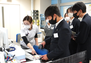 また、臨床検査技師の指導により、採血、血液型検査、血液製剤の準備・出庫の疑似体験などを行いました。