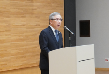 渡邉裕司学長から、日頃の業務に対する感謝や、教育・研究・診療に関する説明があり、新年の挨拶として「今年は、干支では午(うま)年にあたります。午年は前進や飛躍を象徴する年と言われています。午の刻とは太陽が最も高く昇る時間帯を指すとされており、そこからも前進や飛躍といった意味が込められているのではないかと思います。浜松医科大学、そして本学で働く皆さま一人ひとりにとって、本年が新たな飛躍の年となり、実り多く、幸多き一年となりますことを心より祈念いたします。」と言葉がありました。