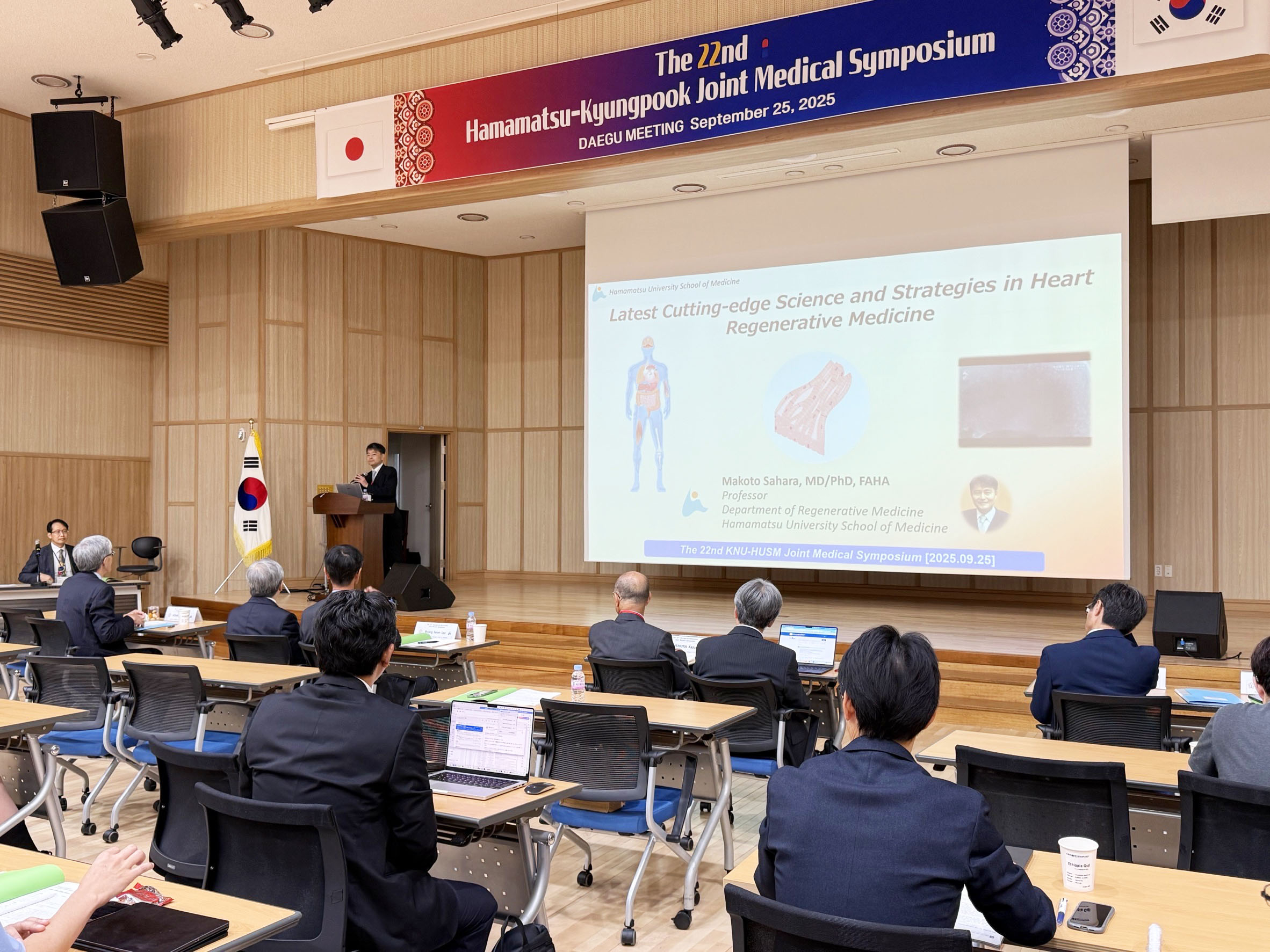 Prof. Sahara gave his plenary lecture, entitled "Latest Cutting-edge Science and Strategies in Heart Regenerative Medicine", in the 1st session at the 22nd Kyungpook-Hamamatsu Joint Medical Symposium.