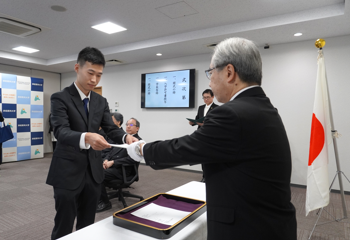 The ceremony was conducted entirely in English. After presentation of the admission letter, President Watanabe delivered his address, saying, "During your stay in Japan, we hope that you will not only devote yourself to research but also experience Japanese history, culture, and customs, and build close relationships with people in Japan. In the future, I hope that you will become a bridge of friendship between Japan and your home countries."