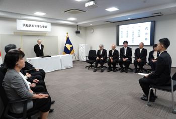 On October 1st, the Hamamatsu University School of Medicine Entrance Ceremony for the Graduate School of Medicine was held in the 2nd Conference Room of the Headquarters Building on campus, to welcomed 6 international students to our doctoral degree program: four from China, one from Bangladeshi and one from Pakistan.